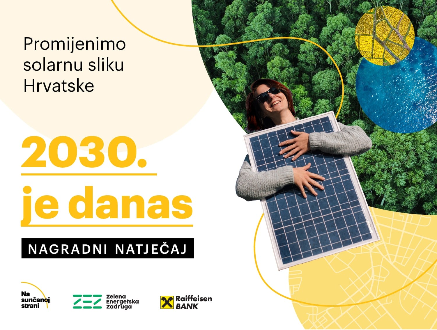 I ove godine Zelena energetska zadruga i Raiffeisenbank u Hrvatskoj organiziraju nagradni natječaj “2030. JE DANAS”. Za sudjelovanje u natječaju, kreirajte autorsku fotografiju i kratki tekst kojim pozivate susjede i sugrađane na korištenje solarne energije te ih priložite u prijavi na natječaj na adresi do 15. travnja.
