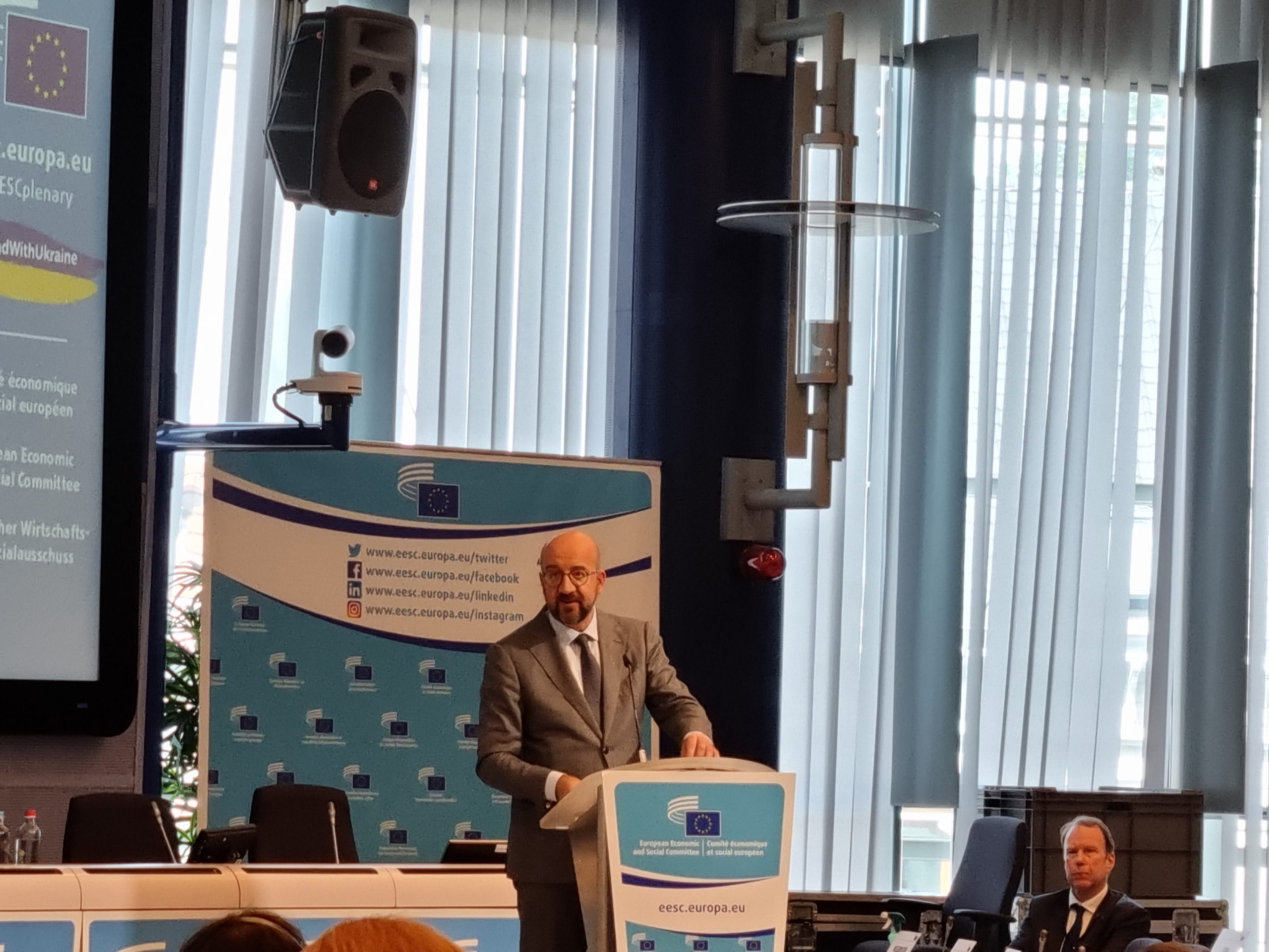 Predsjednik Europskog vijeća Charles Michel na plenarnoj sjednici EGSO-a komentirao je izglede Ukrajine za članstvo u EU i pozvao na stvaranje europske geopolitičke zajednice te postupno uključivanje zemalja zapadnog Balkana u pojedine sektorske politike EU, sukladno njihovu napretku u procesu pristupanja.